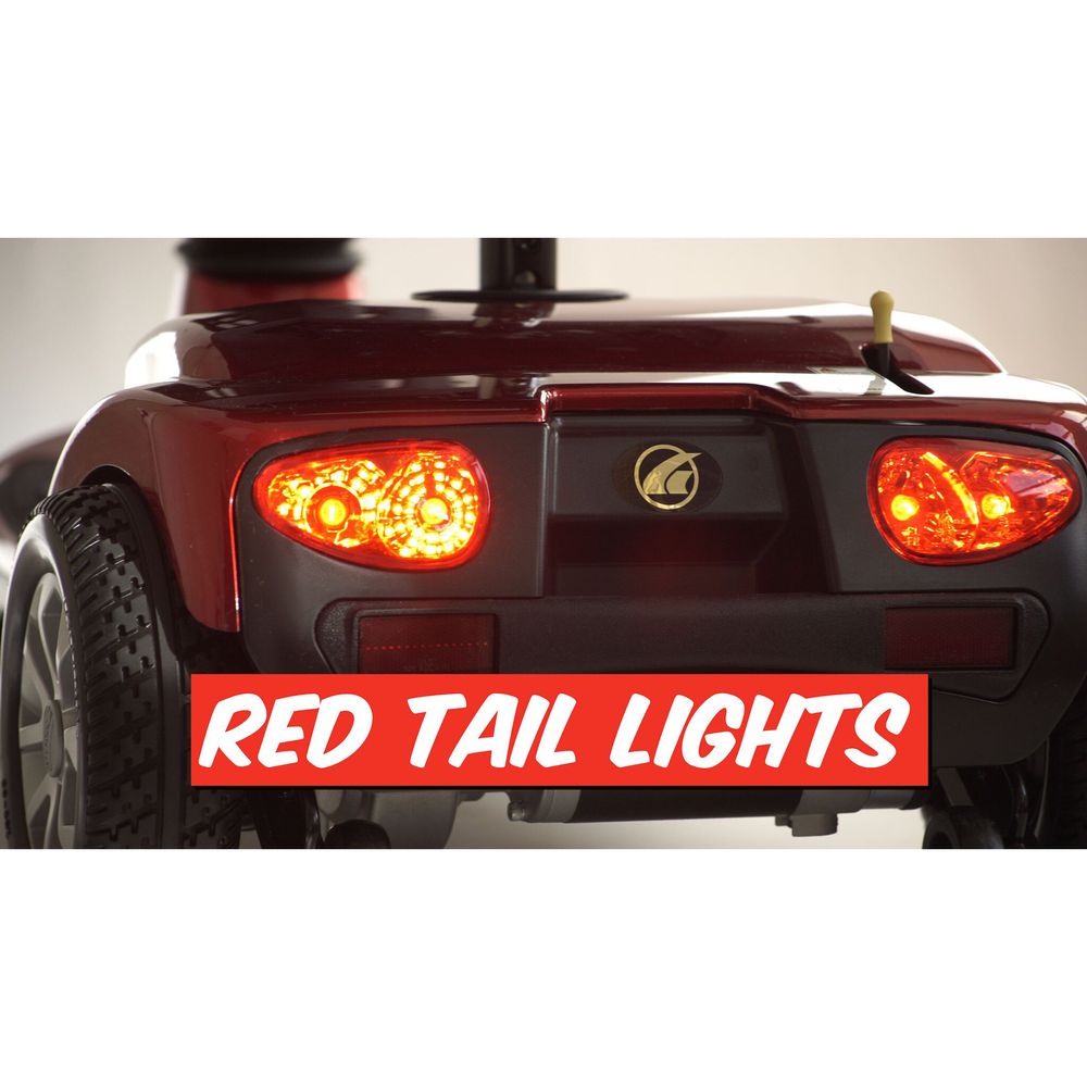 The versatile Companion full-size scooter from Golden Tech provides the style and comfort you need to maintain your independent lifestyle. Its four-wheel design provides the ultimate in stability while traversing both indoor spaces, like the mall or grocery store, or outdoor trips on paved trails or sporting events. Low profile tires with steel rims, a 4.5" under deck clearance, and 56.5" turning radius provides the flexibility you need in any situation. Boasting an 18.9 mile driving range at a top speed of 4.5 mph, you'll have the freedom to ride for hours on a single charge. When the battery is running low, simply plug the scooter into the charging port, mounted conveniently on the tiller.