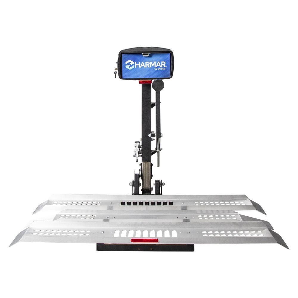 Designed with a dual-entry platform, the Harmar Exterior Hitch-Mounted Scooter Platform Lift is an effortless solution to help you load and transport most three- or four-wheel mobility scooters.