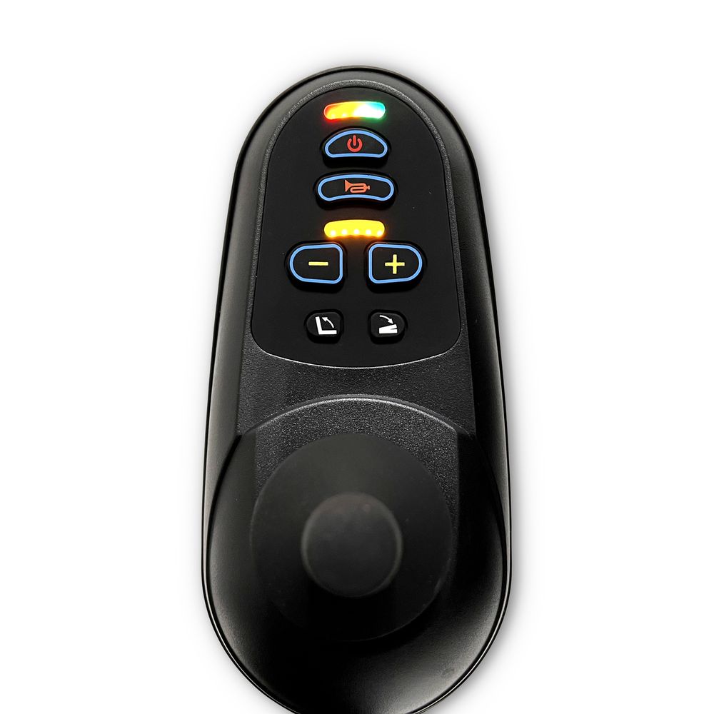 Even with limited dexterity, the joystick controller allows users to easily maneuver the chair and includes a horn, speed control settings and more. The auto-fold function can also be accessed directly from the controller, or the remote, and it features a two-step process to prevent folding operation with a seated occupant.