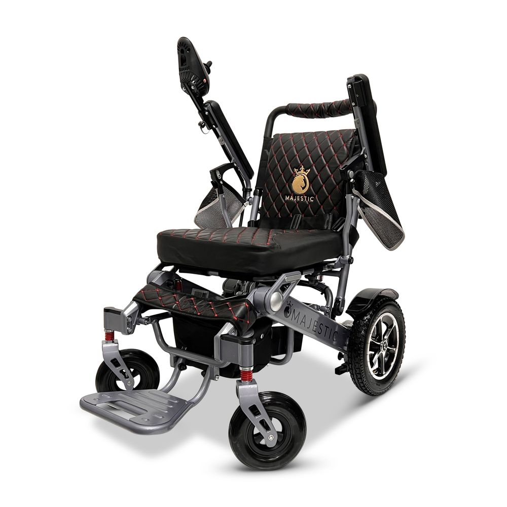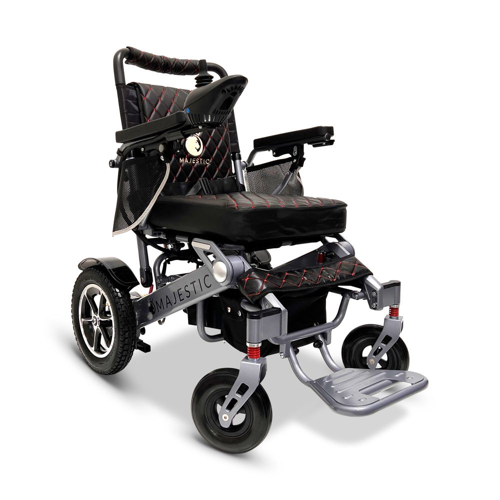 ComfyGo Majestic 20AH Remote-Controlled Electric Wheelchair w/Auto-Fold - Silver Frame/Black Faux Leather