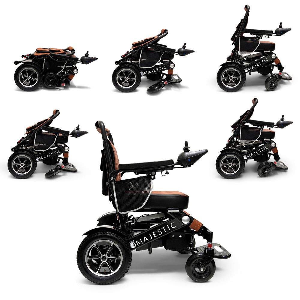 ComfyGo’s Majestic 12AH Remote-Controlled Electric Wheelchair with Auto-Fold is a beautifully designed, lightweight travel solution. This motorized transport wheelchair is cruise- and airline-approved, and features a weight capacity of 350 lbs.
