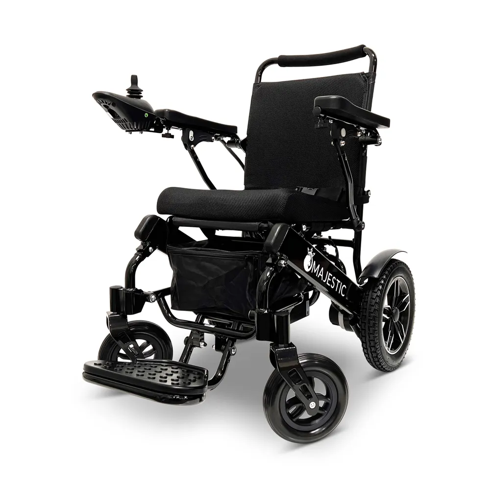 The ComfyGo Majestic 12AH Electric Wheelchair will instantly elevate your mobility experience at home or on the go. This innovative, motorized wheelchair boasts a lightweight, airline-approved design, making it an ideal companion for all your adventures. With its easy-to-fold mechanism, it effortlessly fits into most car trunks, ensuring seamless transportation and storage.
