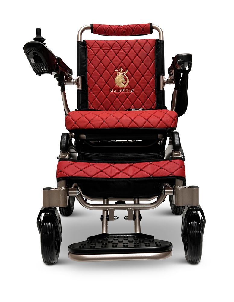 ComfyGo Majestic 12AH Remote-Controlled Electric Wheelchair with 17.5" Seat - Bronze Frame/Red Faux Leather