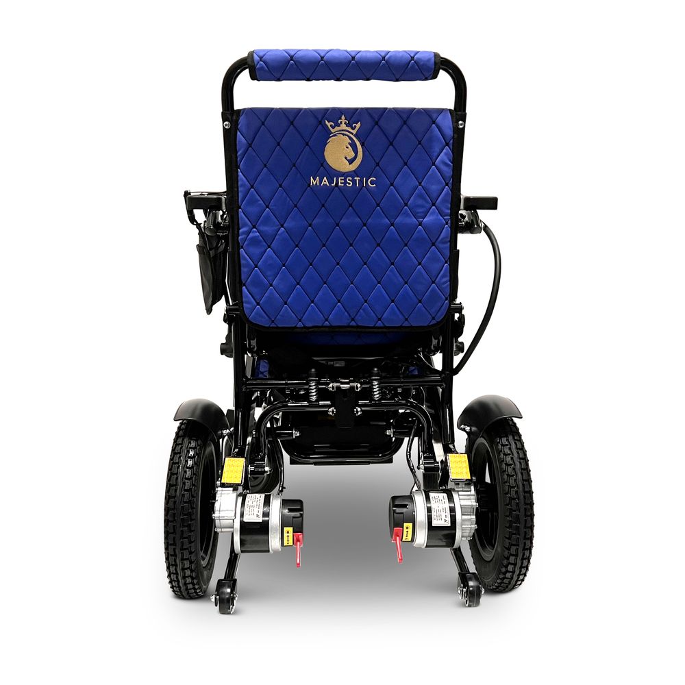 ComfyGo Majestic 20AH Remote-Controlled Electric Wheelchair with 17.5" Seat - Black Frame/Blue Faux Leather