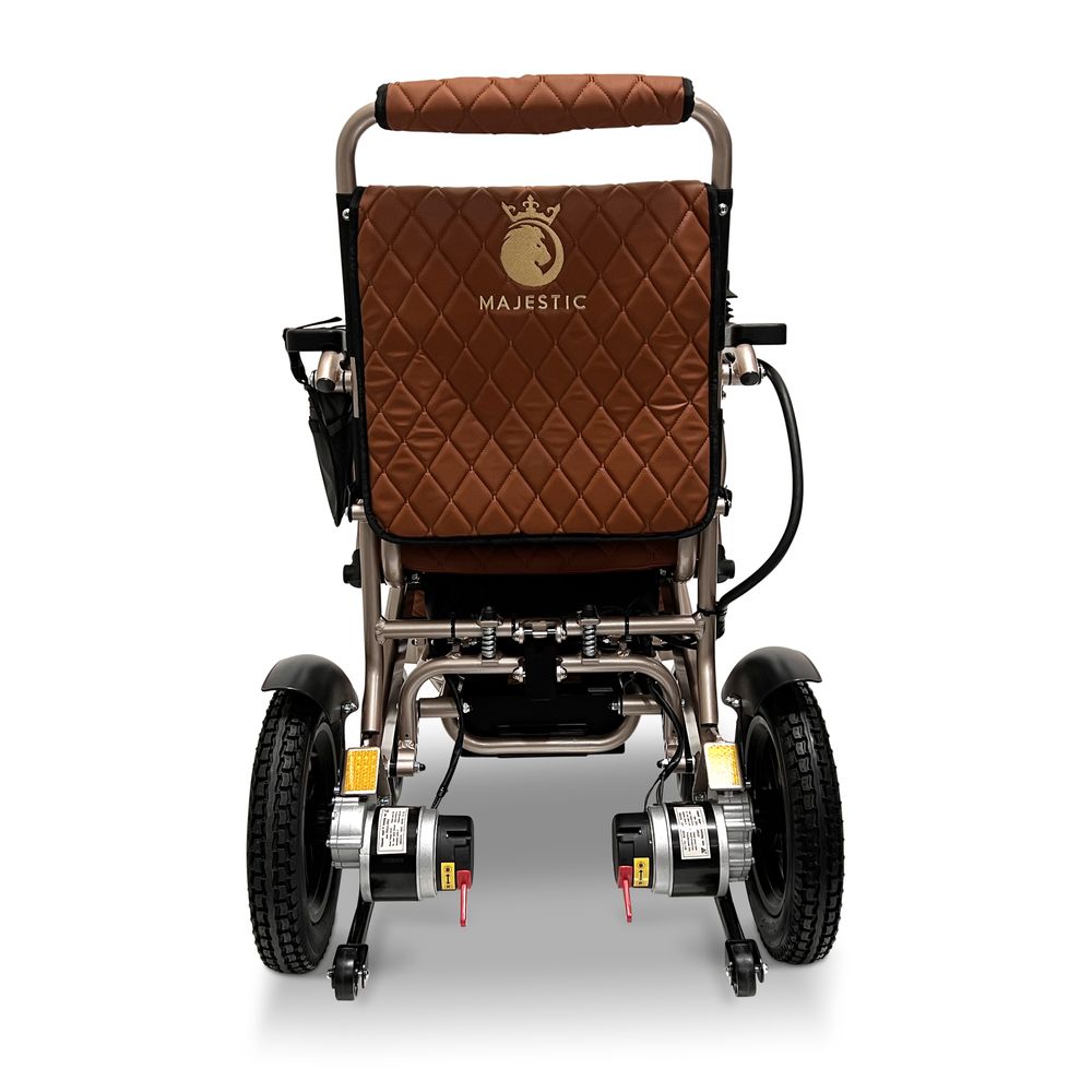 ComfyGo Majestic 20AH Remote-Controlled Electric Wheelchair with 17.5" Seat - Bronze Frame/Taba Faux Leather
