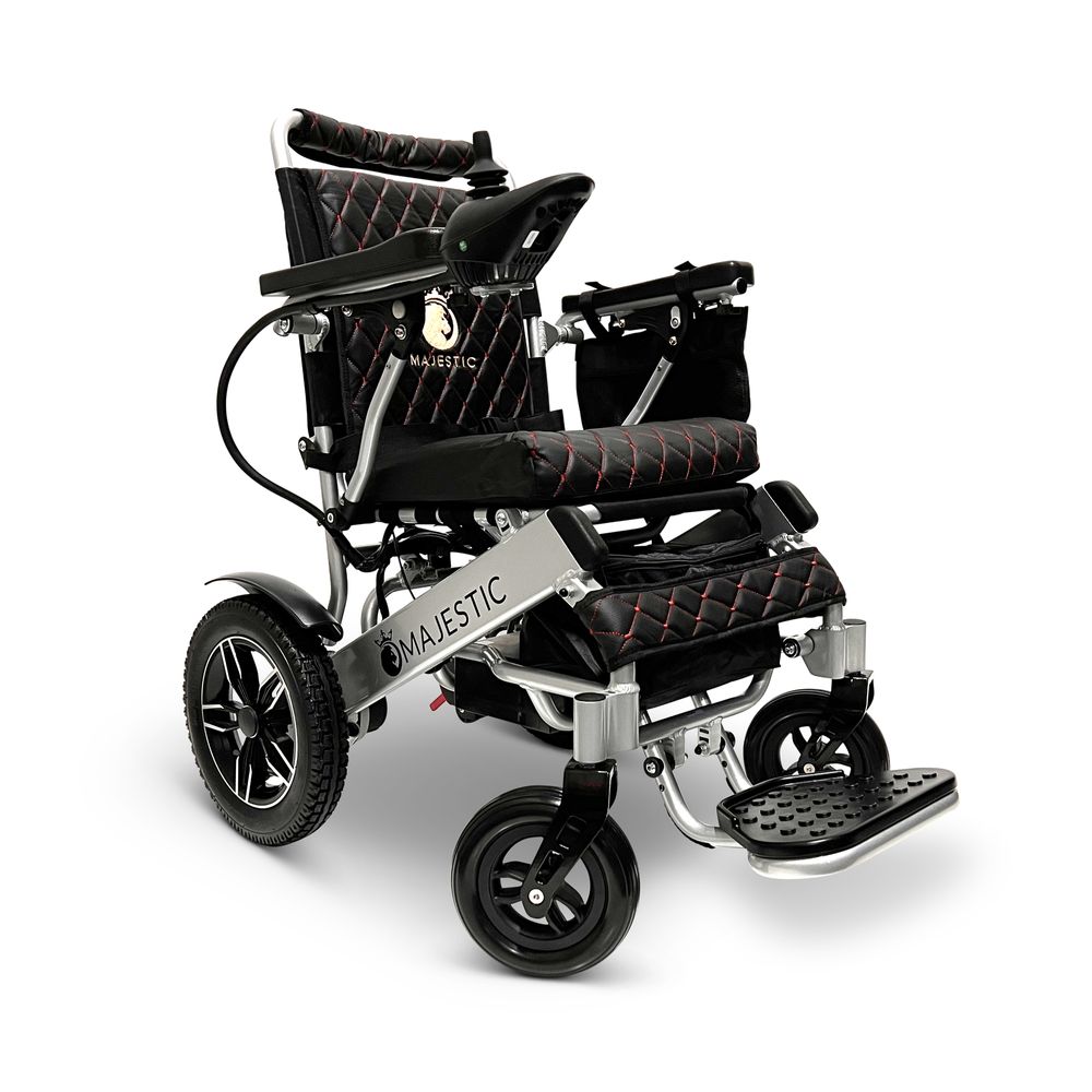 ComfyGo Majestic 20AH Remote-Controlled Electric Wheelchair with 17.5" Seat - Silver Frame/Black Faux Leather