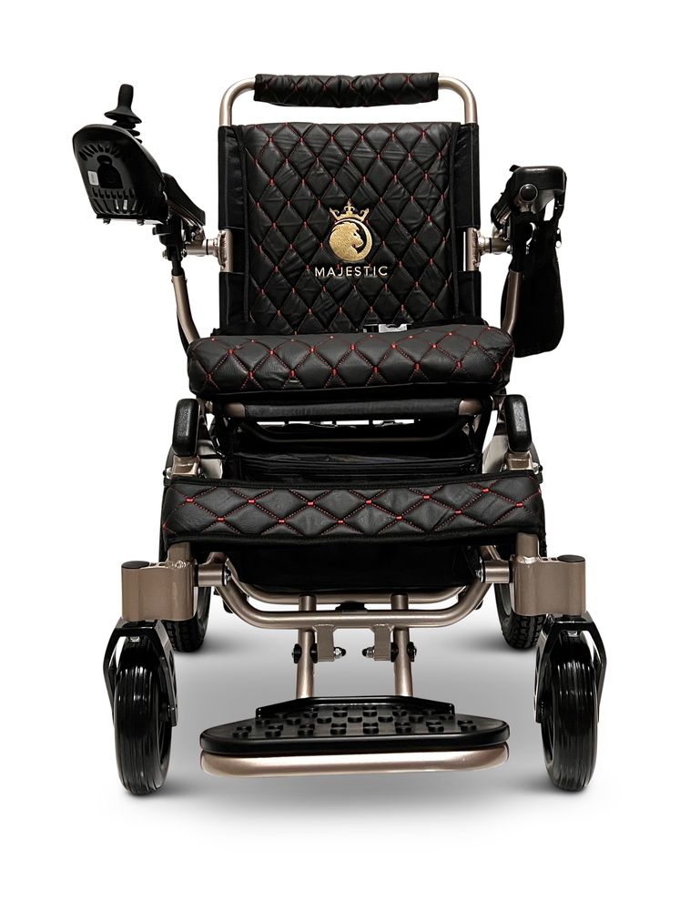 ComfyGo Majestic 12AH Remote-Controlled Electric Wheelchair with 20" Seat - Bronze Frame/Black Faux Leather