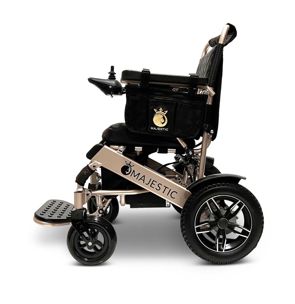 The ComfyGo Majestic 12AH Electric Wheelchair will instantly elevate your mobility experience at home or on the go. This innovative, motorized wheelchair boasts a lightweight design that is an ideal companion for all your adventures. With its easy-to-fold mechanism, it effortlessly fits into most car trunks, ensuring seamless transportation and storage.