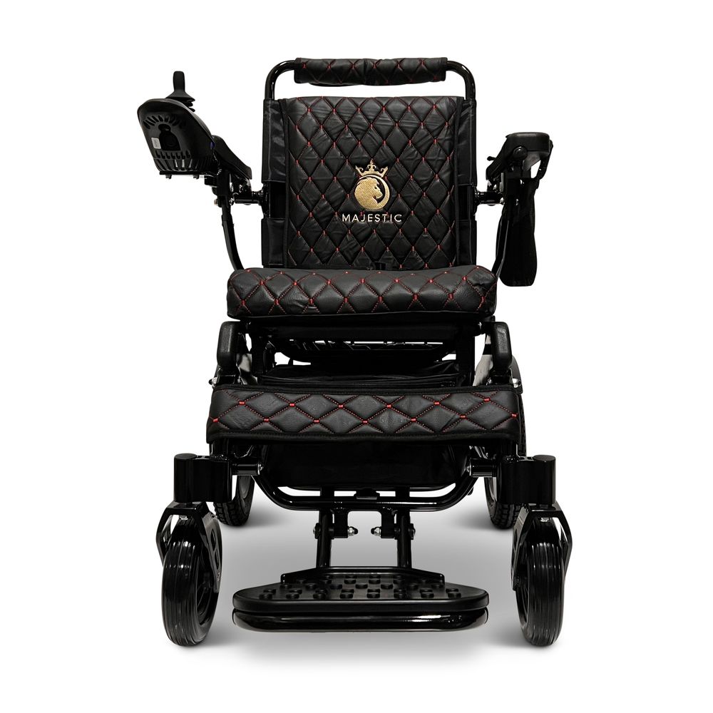 ComfyGo Majestic 20AH Remote-Controlled Electric Wheelchair with 20" Seat - Black Frame/Black Faux Leather