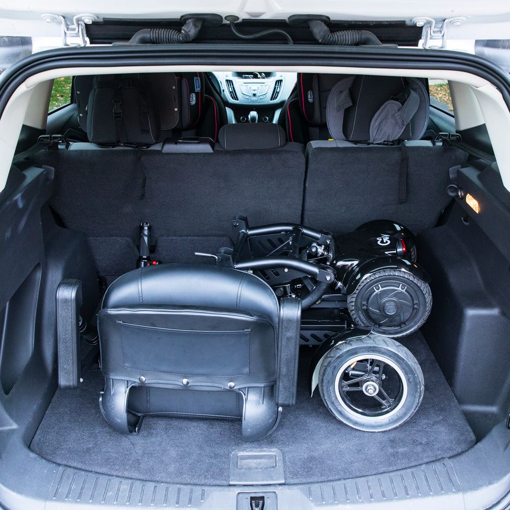 When folded, the scooter can be lifted up into a trunk for easy, compact transport.