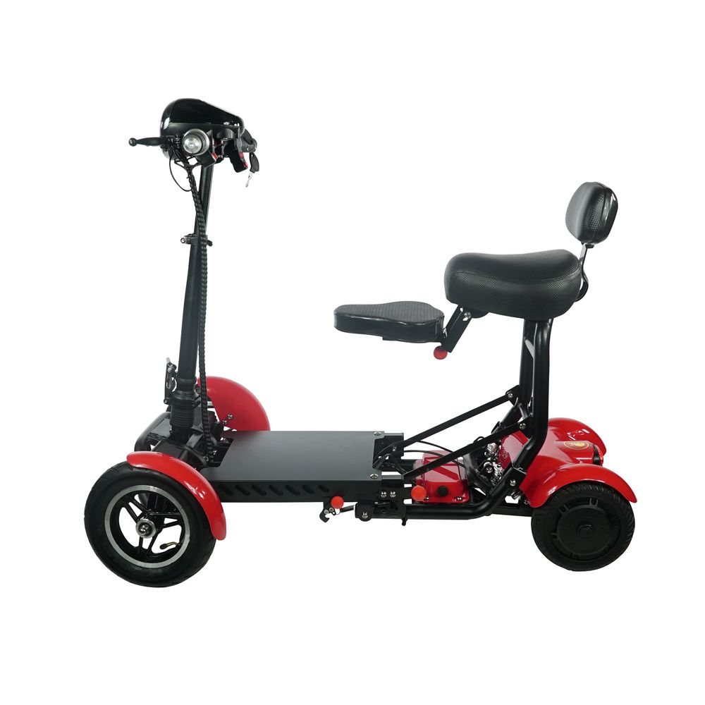 - Folding mobility scooter with a standard seat; up to 12MPH