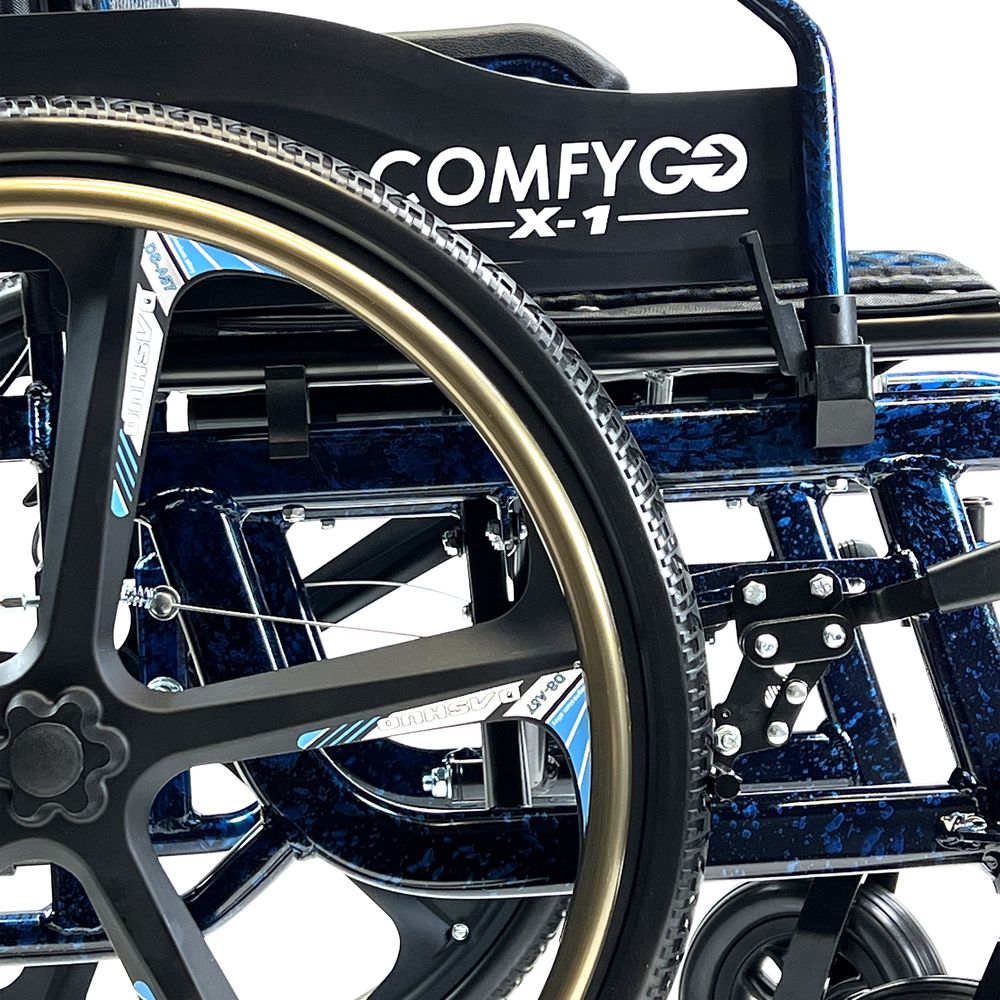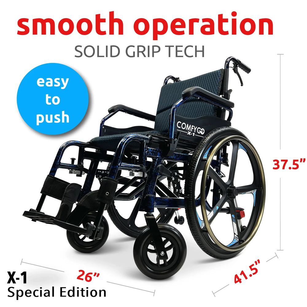ComfyGo Manual Wheelchair, 24" Quick-Detach Aluminum Wheels - Blue
