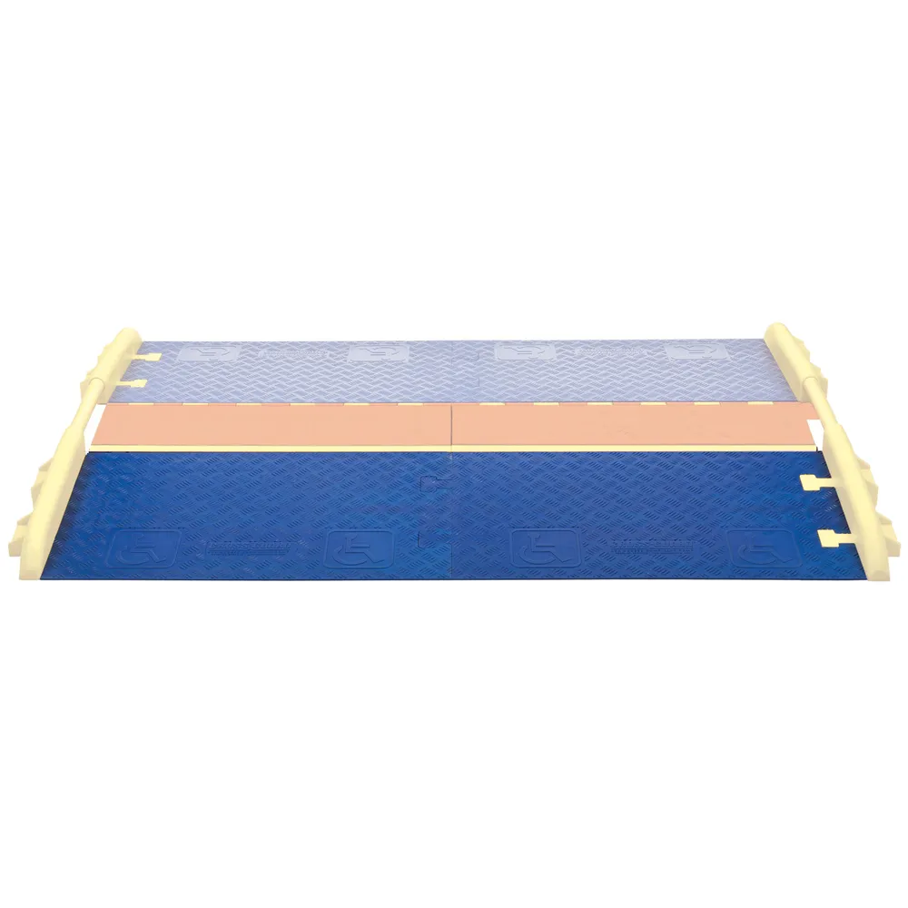 Connect the ADA accessible cable ramp to the Linebacker General Purpose single-channel cable ramps to making the cable protectors ADA compliant. ADA ramps create a gentle slope making it easy for pedestrians, wheelchairs, and vehicles to get up and down these ramps. Safety symbols are molded on the slip-resistant surface.