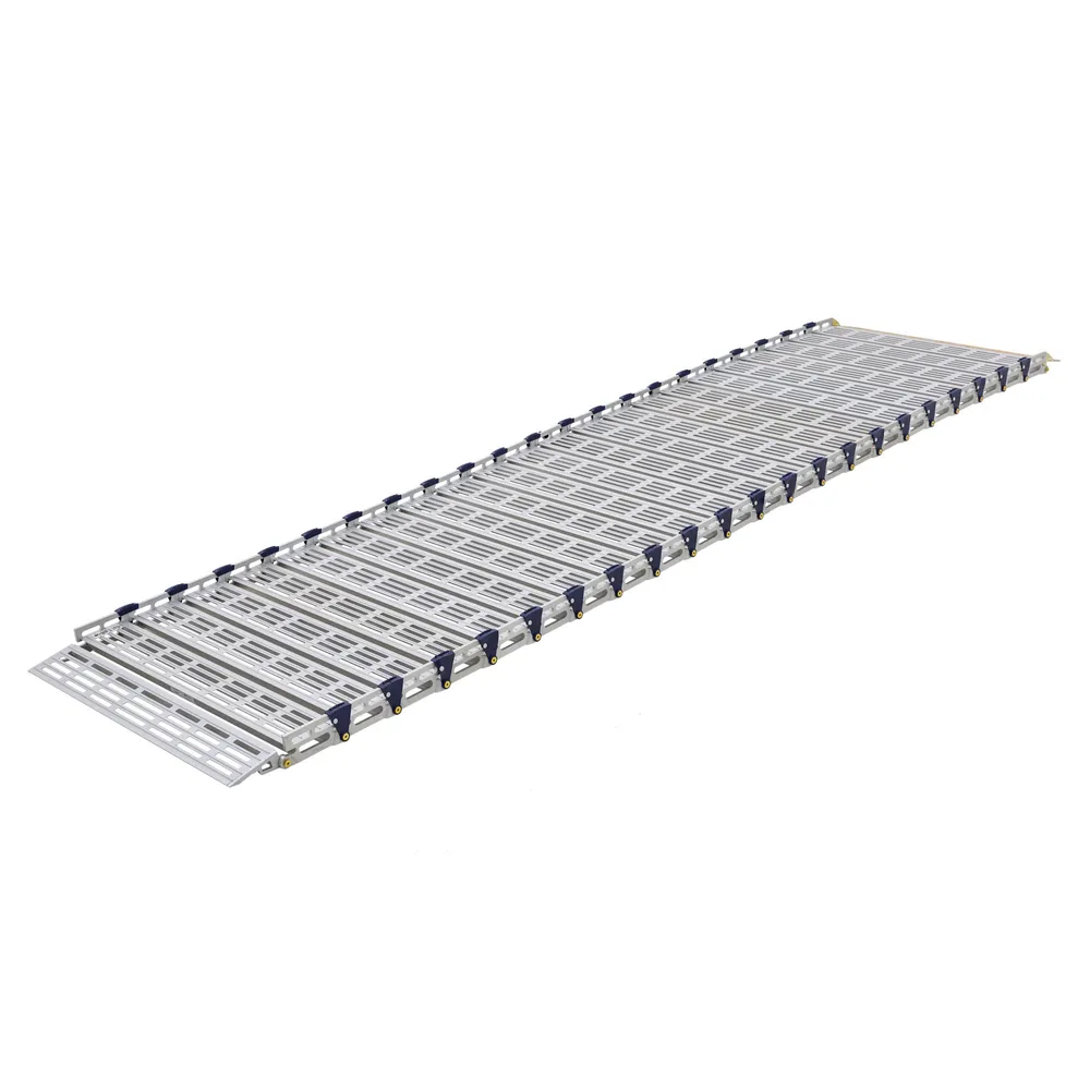 Featuring anodized, aircraft-grade aluminum construction, this durable, rustproof ramp supports up to 1,000 pounds. The entire ramp system breaks down quickly and simply for storage and travel, and you can add length any time by ordering extra links. All assembly components are included, and installation is easy with quick-connect pins.
