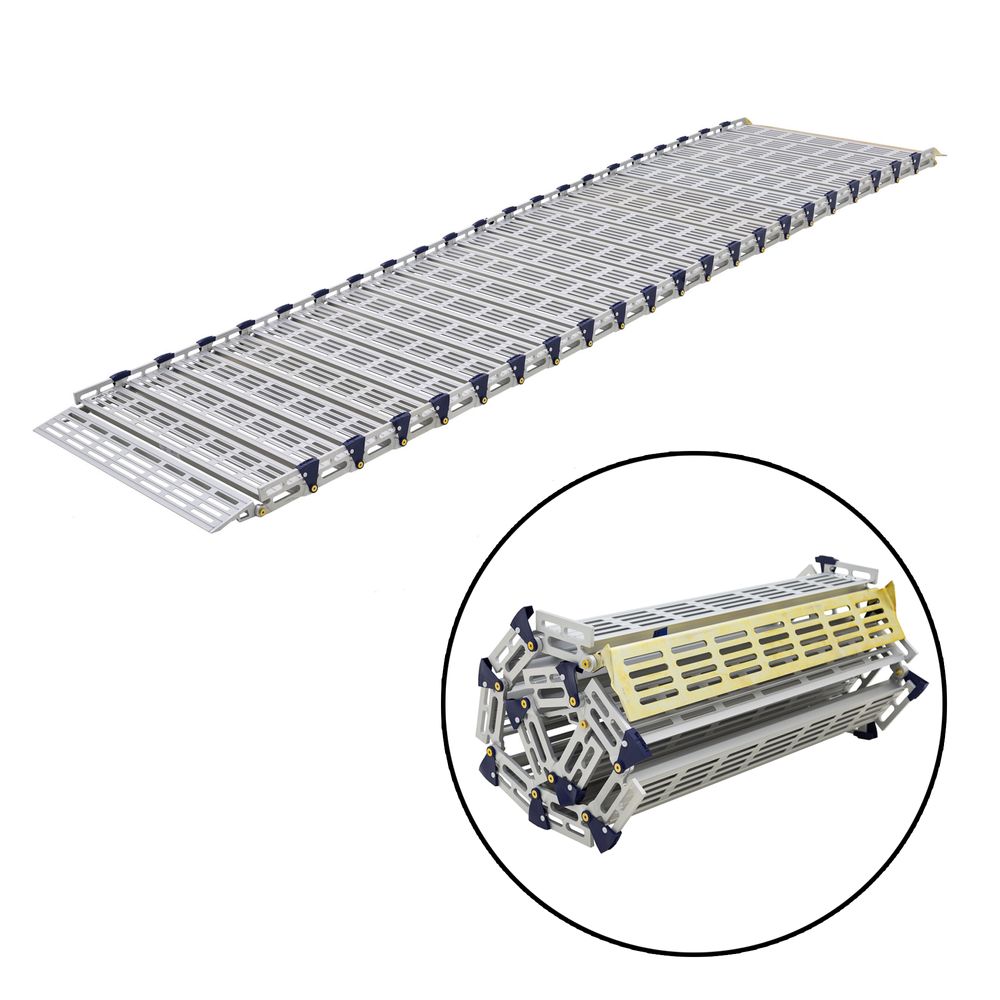 The 10' Silver Spring Roll-Tek Modular Ramp Kit comes complete with all necessary components and is simple to assemble and install. The ramp can be easily reconfigured into different sizes as needed and breaks down into shorter sections for easy storage
