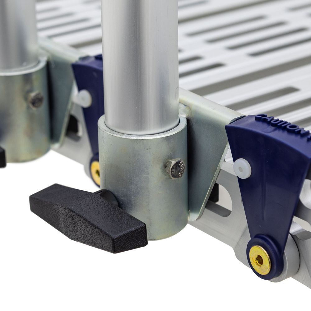 Each leg features large adjustment handles so that you can raise or lower the leg to the exact height you need, and a wide foot to prevent sinking or shifting on soft ground. Optional leg reinforcement kits add stability in situations where access is needed for rises of 35” of more.