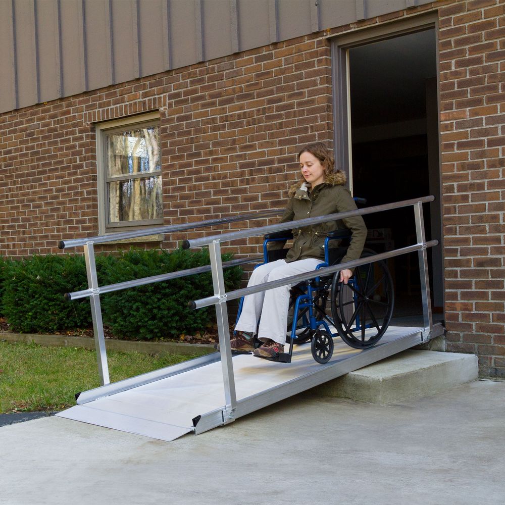 The one-piece design makes installation easy, simply place the ramp where you need access, and install the handrails. These ramps can be used with manual wheelchairs, power chairs, and scooters. With multiple lengths available, they are ideal for temporary or semi-permanent home access when a more expensive modular ramp system is not practical.