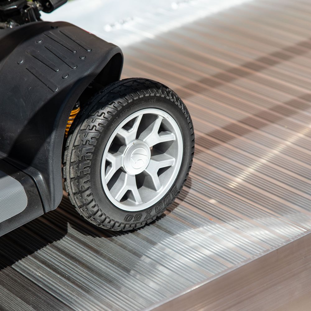 The extended aluminum plate ensures that wheels move between the ramp and the ground without jarring bumps or jolts.