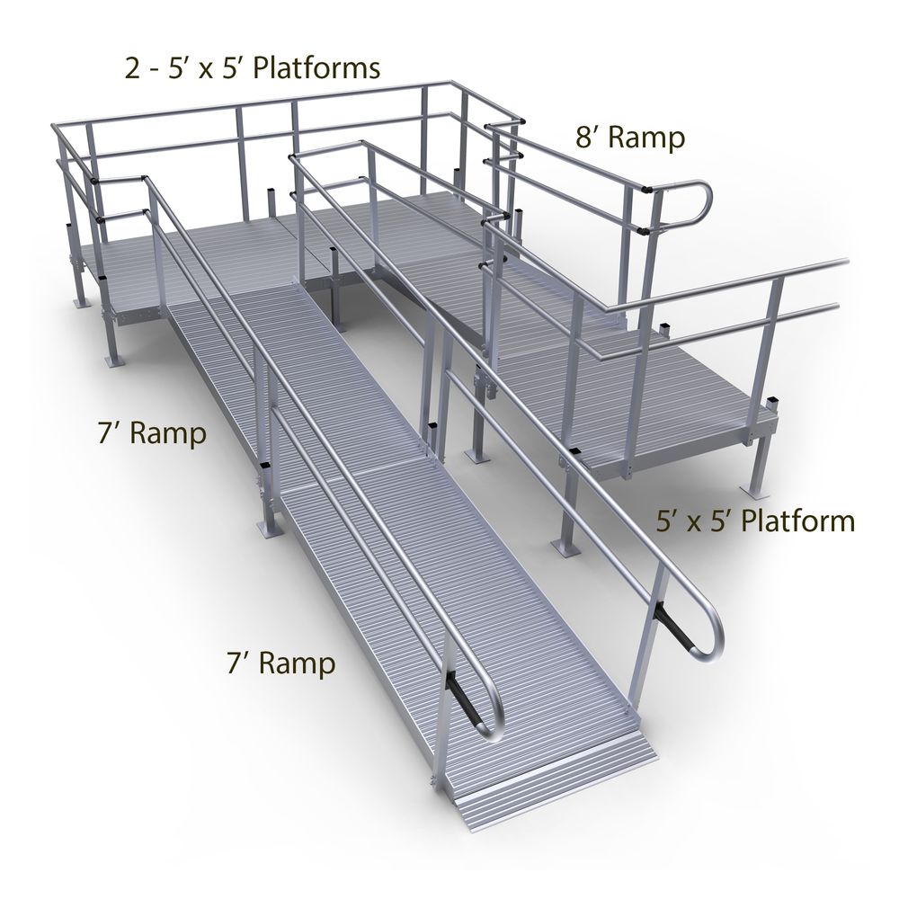 Harmar Elevation 22' Side-Entry U-Shaped Modular Ramp with 5' Top Platform, 8' Turning Platform - Installation Included