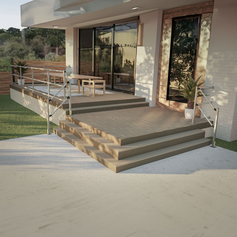 Designed to add safety and ease of access to porches and decks, the modular EZ-ACCESS RAILWAY Handrail and Barrier Kit can be mixed and matched to fit your outdoor footprint perfectly. Made of lightweight, heavy-duty aluminum, this kit requires no maintenance and installs easily on wood or concrete.