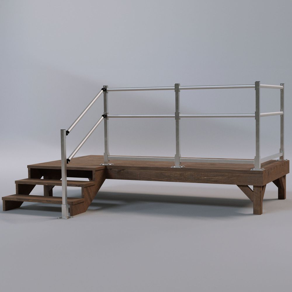 This modular kit comes with one post and three 5' horizontal barriers and can be extended by joining additional kits to the open end. To complete the barrier, either install the open side onto an existing structure or purchase a single terminal post (RAILPK).