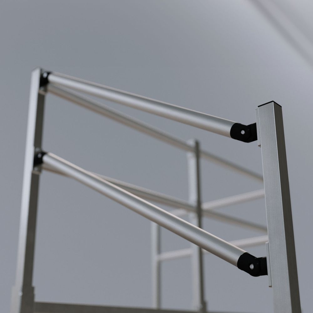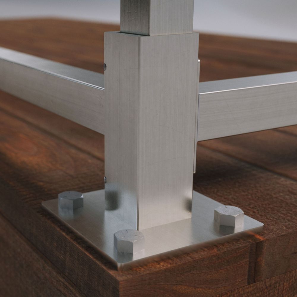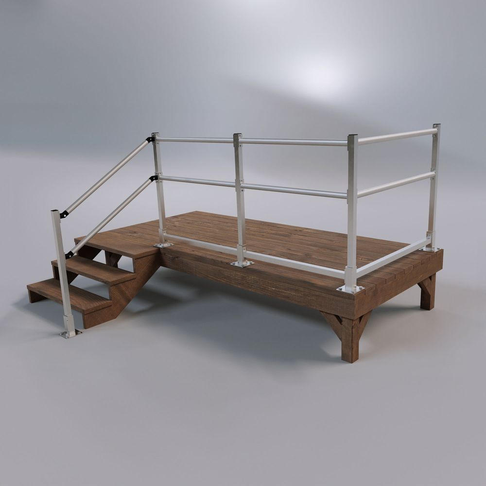 The 5' handrail tubes are trimmable to ensure an exact fit for your specific requirements. The lower square barrier increases safety by providing another level of fall protection, and two upper handrail tubes provide an easy grip for those resting or walking along the barrier. The square vertical post measures 1.5" x 1.5" x 36', the round handrails measure 1.5" x 60", and the square barrier measures 1.5" x 1.5" x 59.5".
