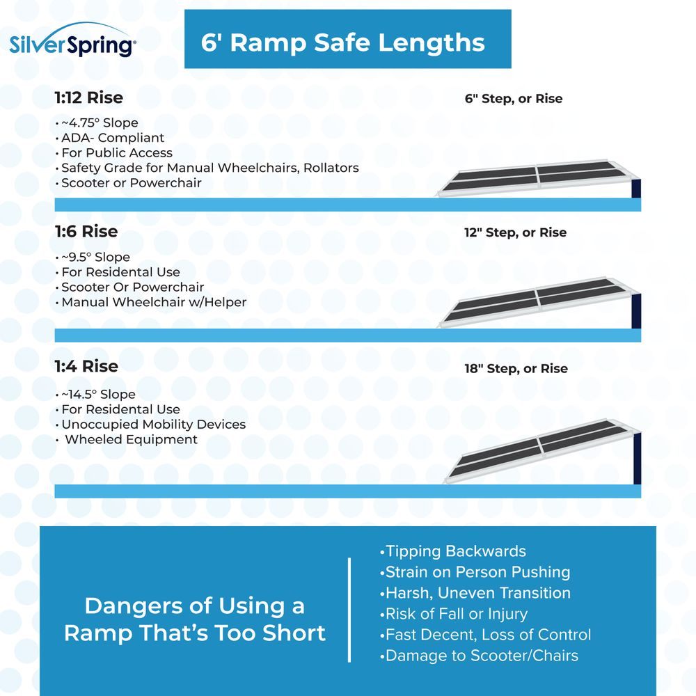 6' L x 36" W Silver Spring Folding Aluminum Wheelchair Access Ramp with Handrails - 850 lb. Cap