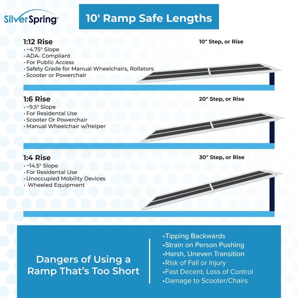 10' L x 36" W Silver Spring Folding Aluminum Wheelchair Access Ramps with Handrails - 850 lb. Cap