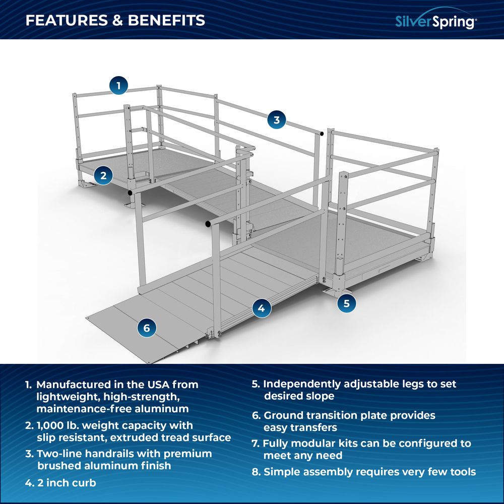 Silver Spring Clearway 10' L-Shaped Modular Ramp with 4' Platform and Turn
