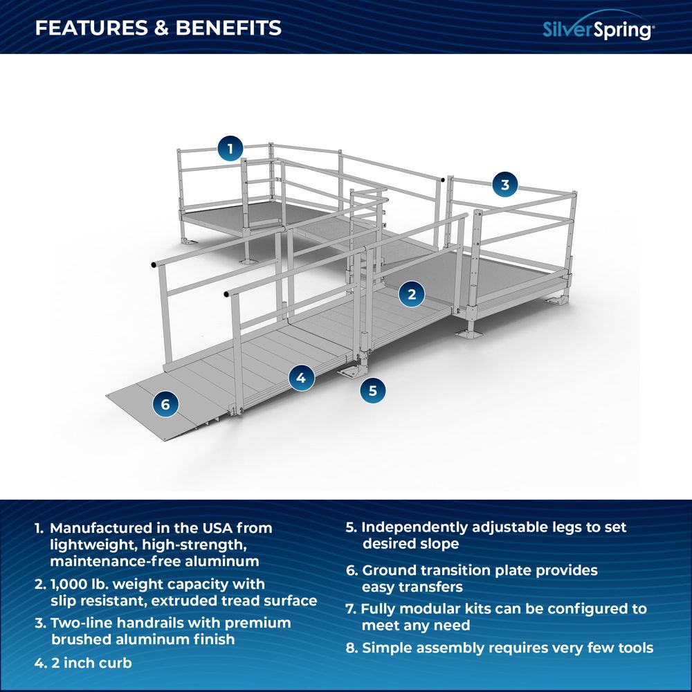 Silver Spring Clearway 14' L-Shaped Modular Ramp with 5' Platform and Turn
