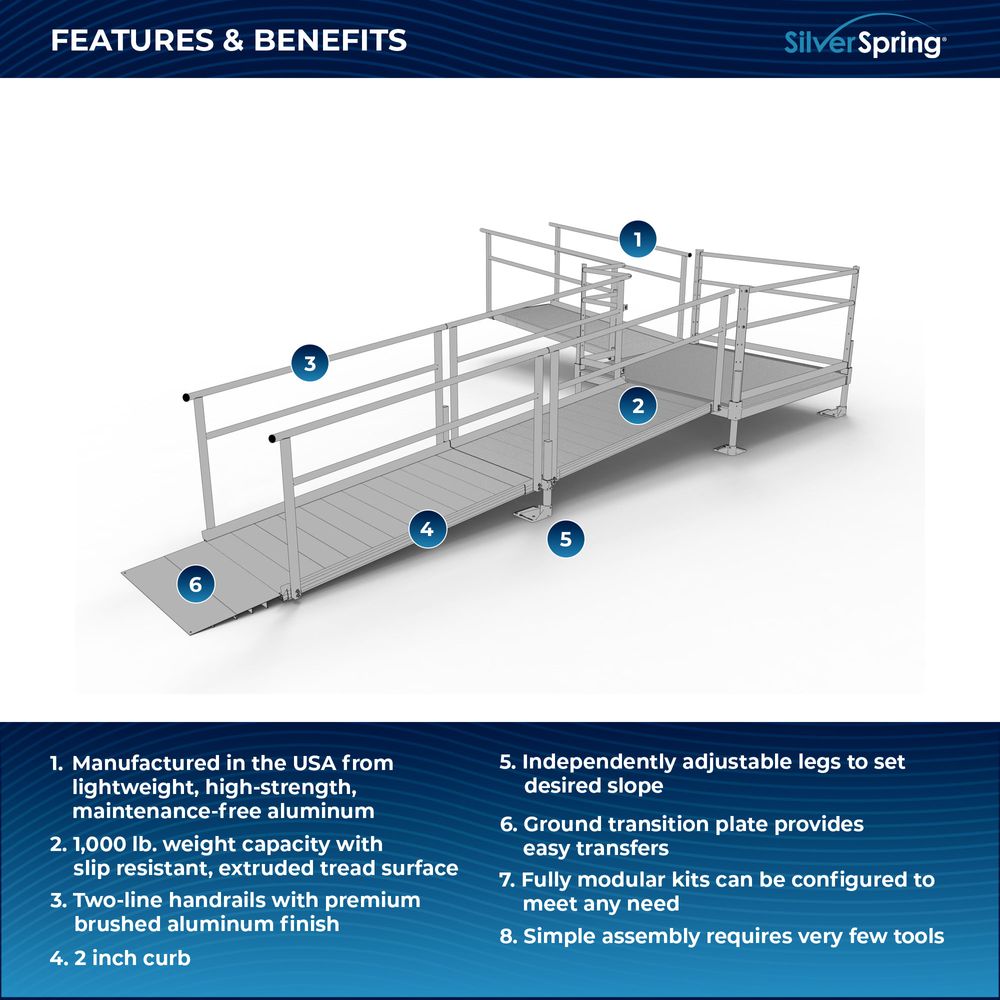 Silver Spring Clearway 18' L-Shaped Modular Ramp with 5' Turn Platform