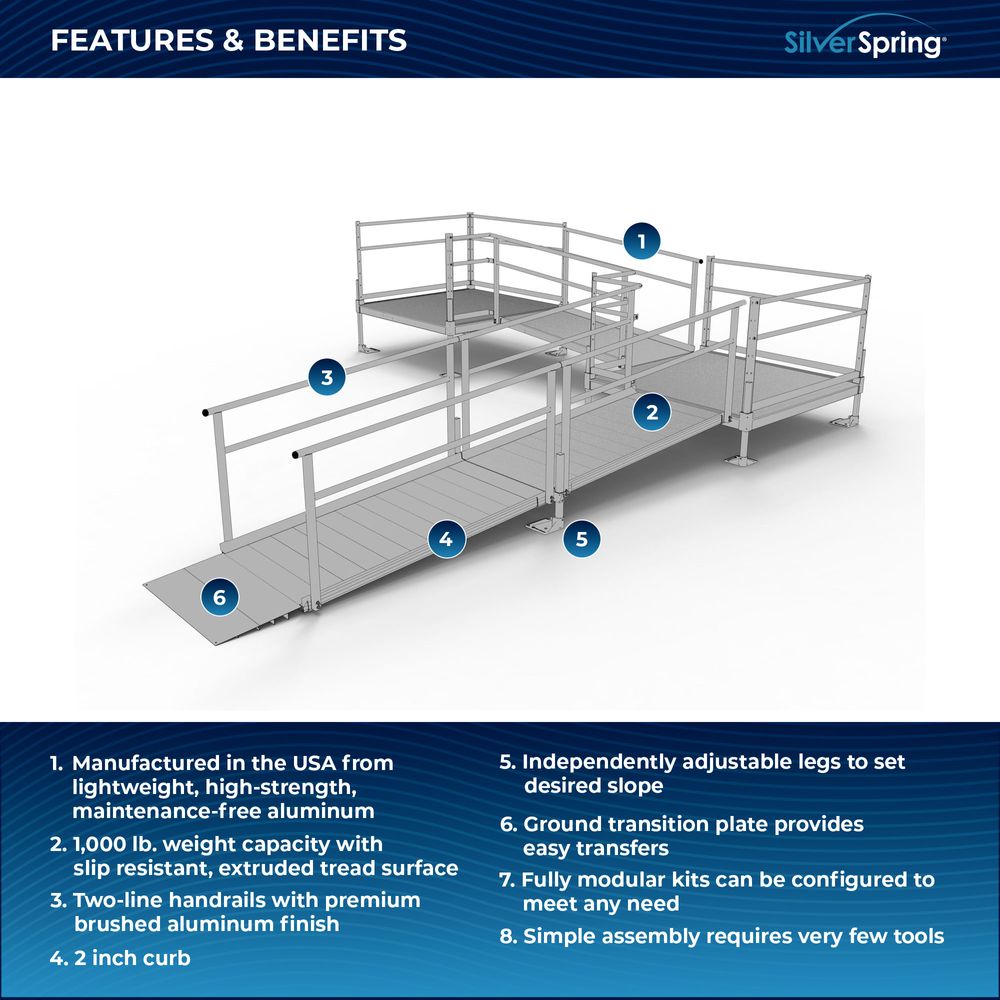 Silver Spring Clearway 18' L-Shaped Modular Ramp with 5' Platform and Turn