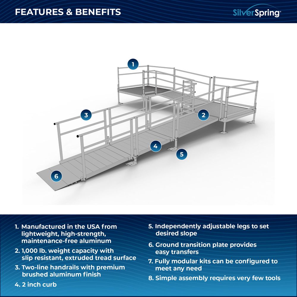 Silver Spring Clearway 21' L-Shaped Modular Ramp with 5' Platform and Turn