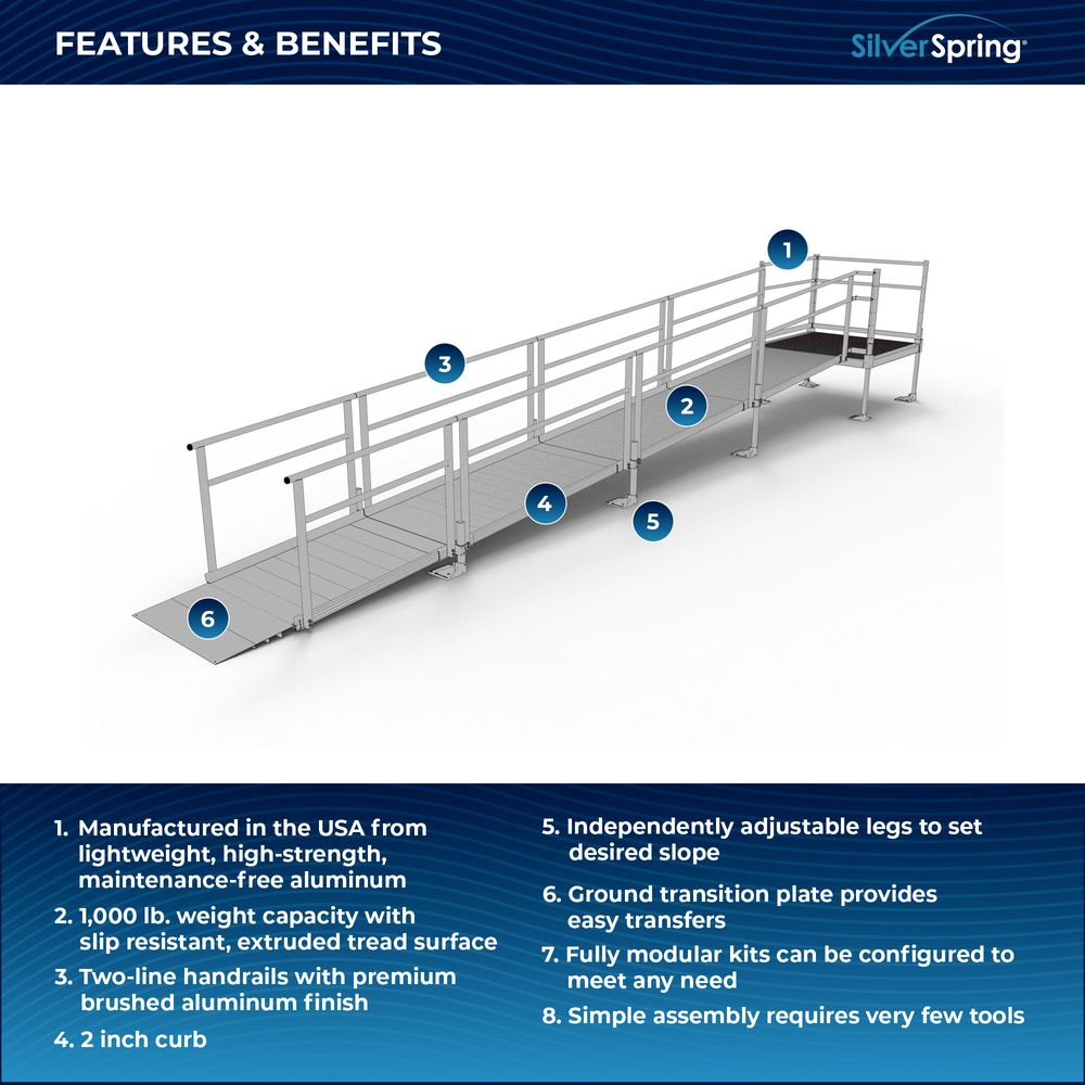 Unlike other manufacturers that require you to order multiple parts and hardware to customize your ramp, our Silver Spring system ships with every piece you need to install the ramp you need.