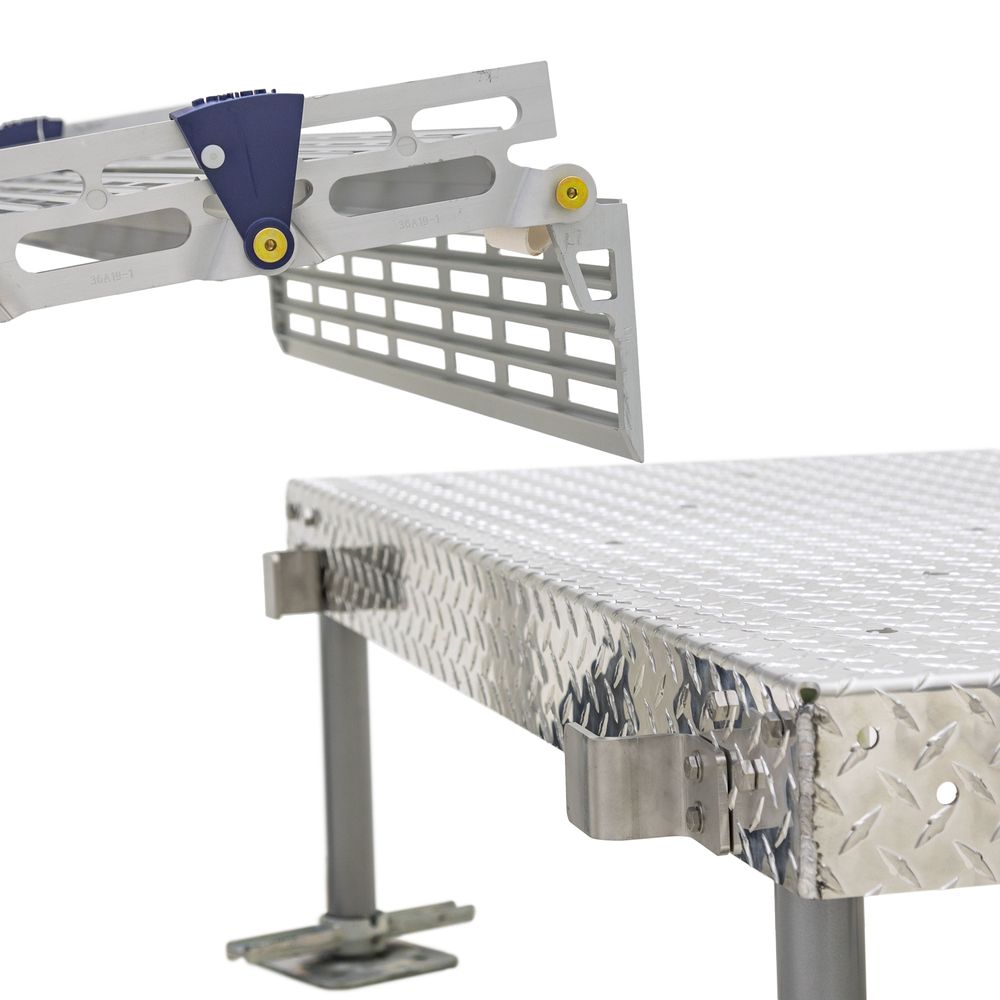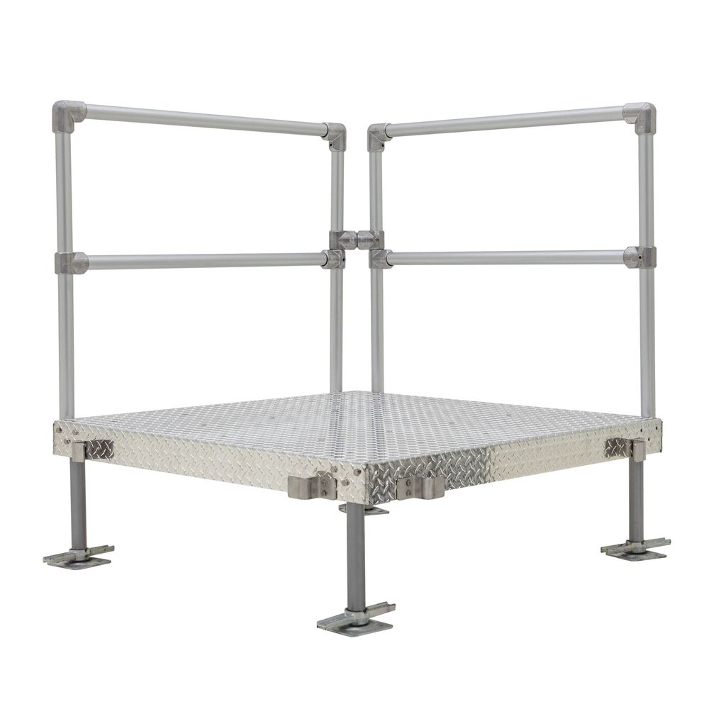 Featuring anodized, aircraft-grade aluminum construction, this durable, rustproof platform with handrails supports up to 1,000 pounds. All necessary components for installation are included: one platform, mounting brackets, handrails and support legs.