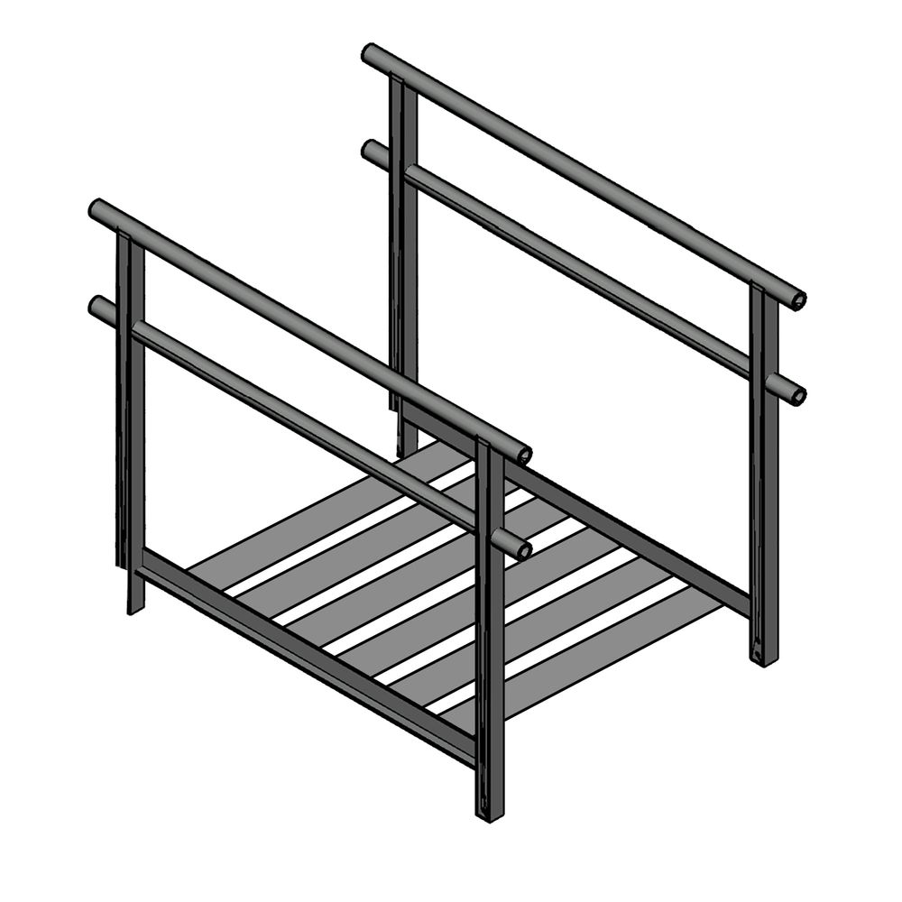 When a platform is incorporated into the modular ramp design, simple J-hook and tongue-and-groove attachments make the task of assembling them much easier than having to fuss with packages of bolts and nuts.