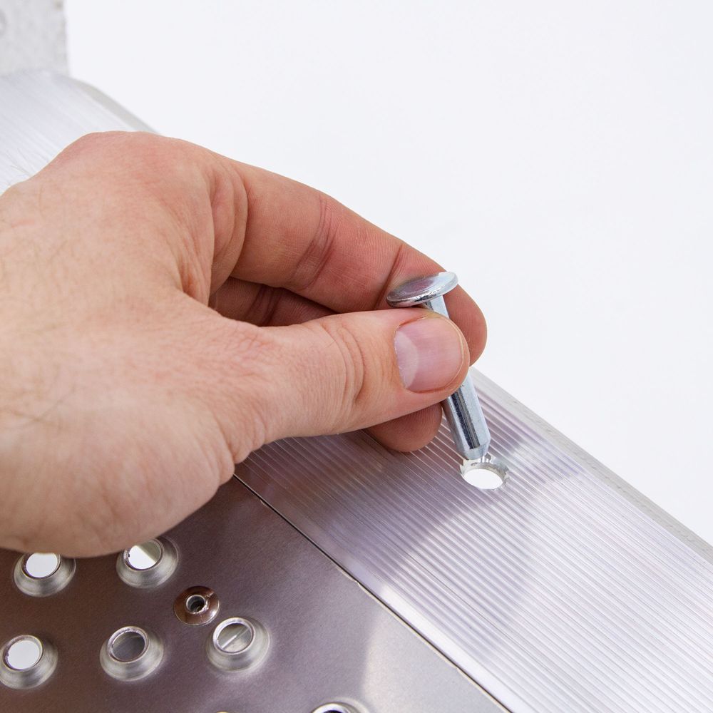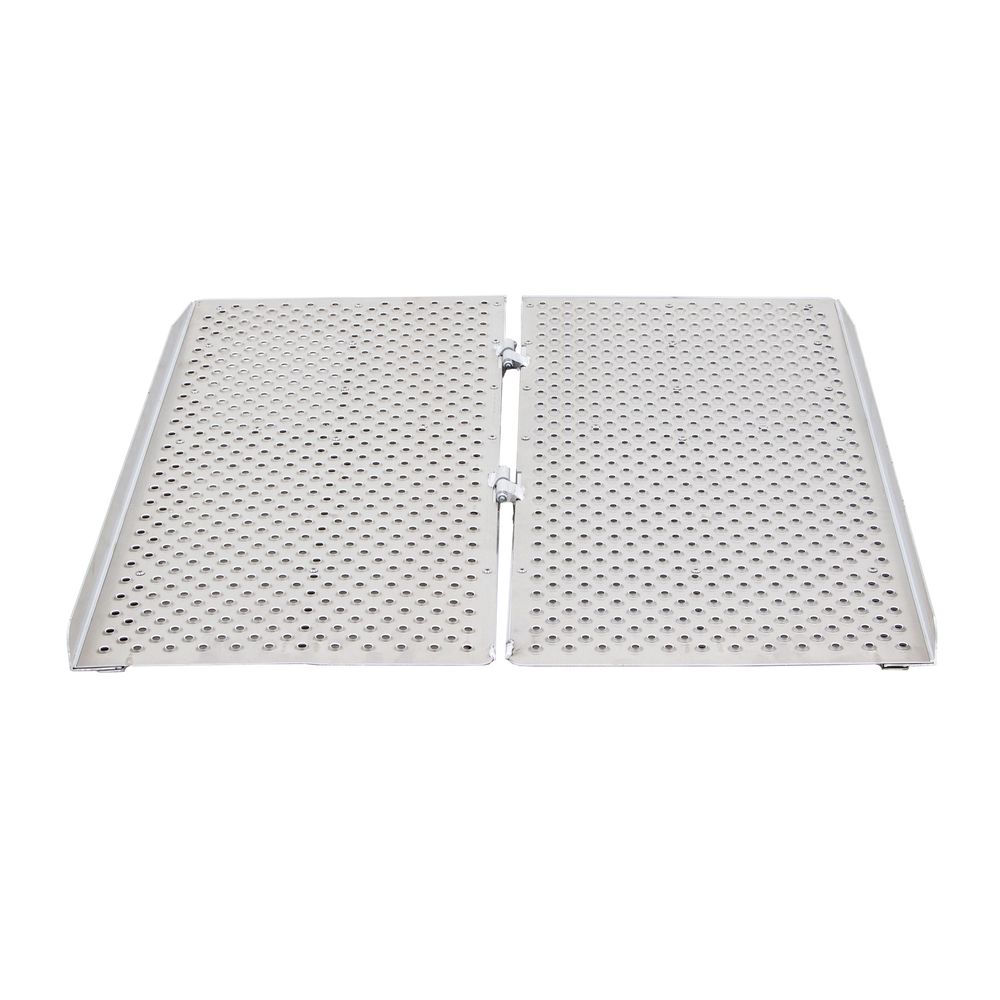 The punch-plate aluminum surface provides superior traction by allowing ice, snow, rain and debris to pass through the ramp for safer use in all weather conditions and climates.