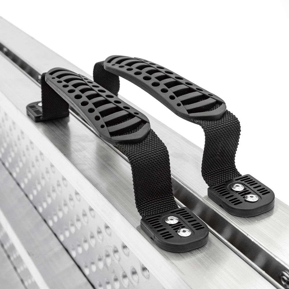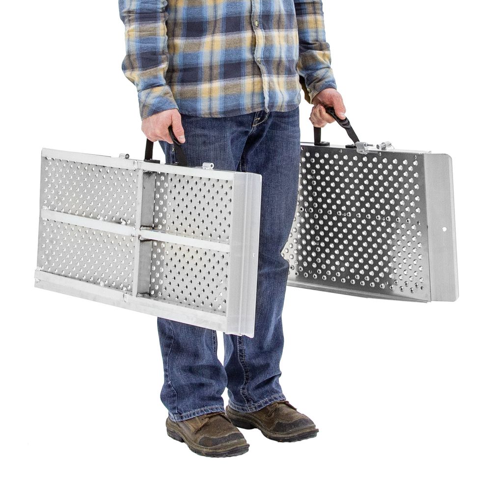 With the largest ramp weighing in at only 27.5 pounds, it's easy for one person to transport these light aluminum ramps. They can be split into two pieces in seconds, and both sides come with a built-in carrying handle (handles not included on 2' ramp) for an evenly-distributed load.