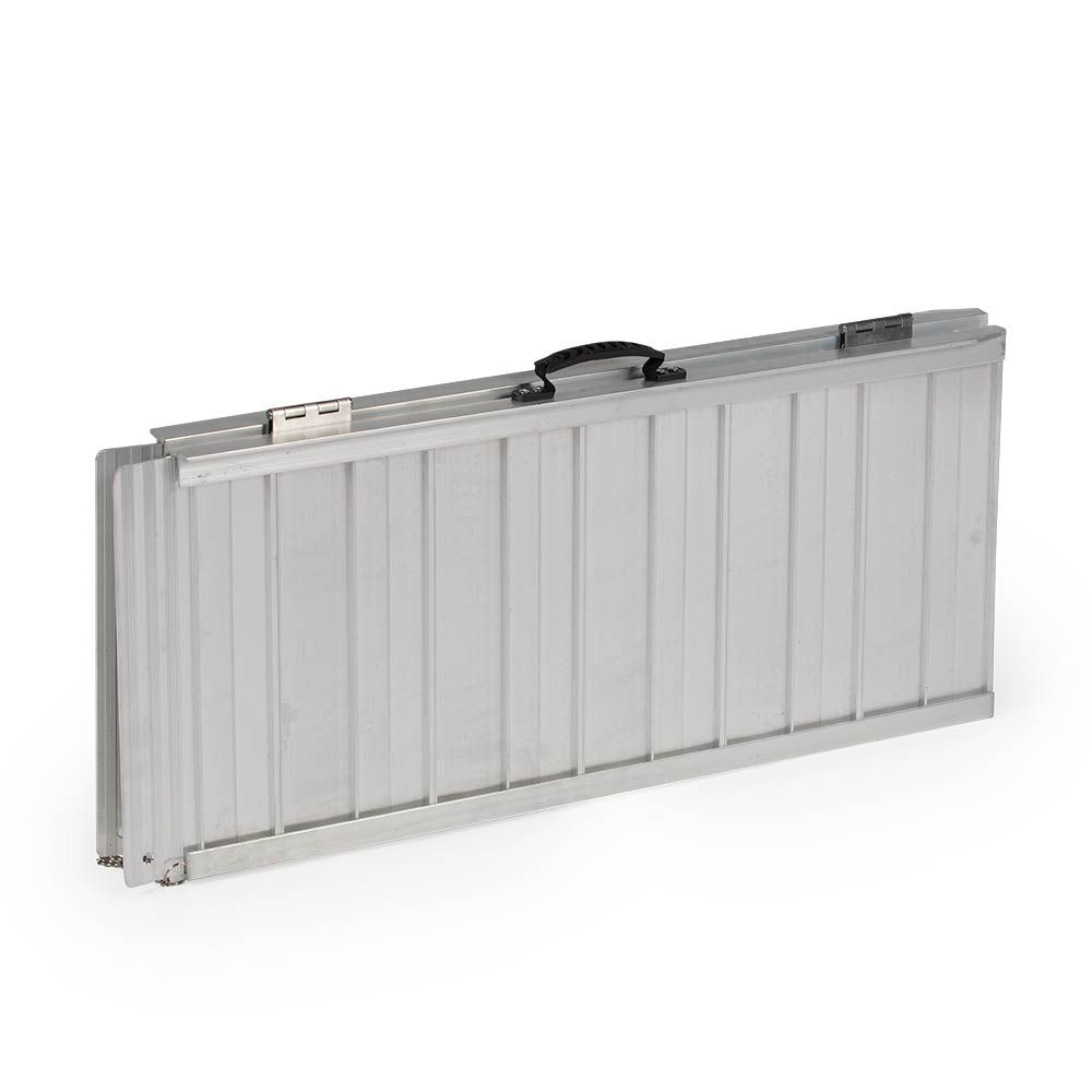 - Folds to half of its original size for easy transport with built-in carrying handles; tapered curbs allow exterior doors to be opened without hitting the ramp