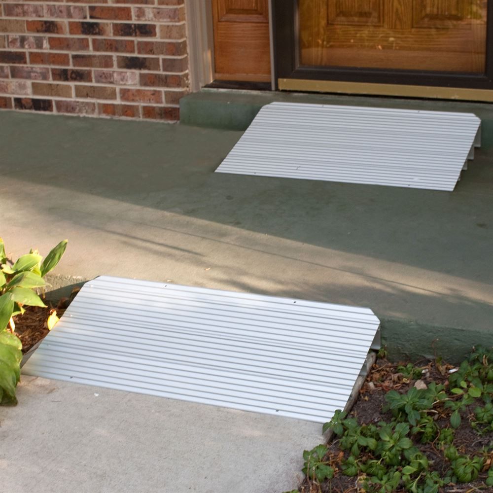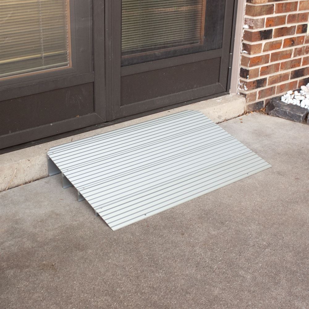 The modular design of these ramps makes assembly a snap and also allows you to use your ramp at its highest or any lower height just by removing a section. The Silver Spring threshold ramp is manufactured from rust-proof anodized aluminum which makes it a perfect solution for either indoors or outdoors use.