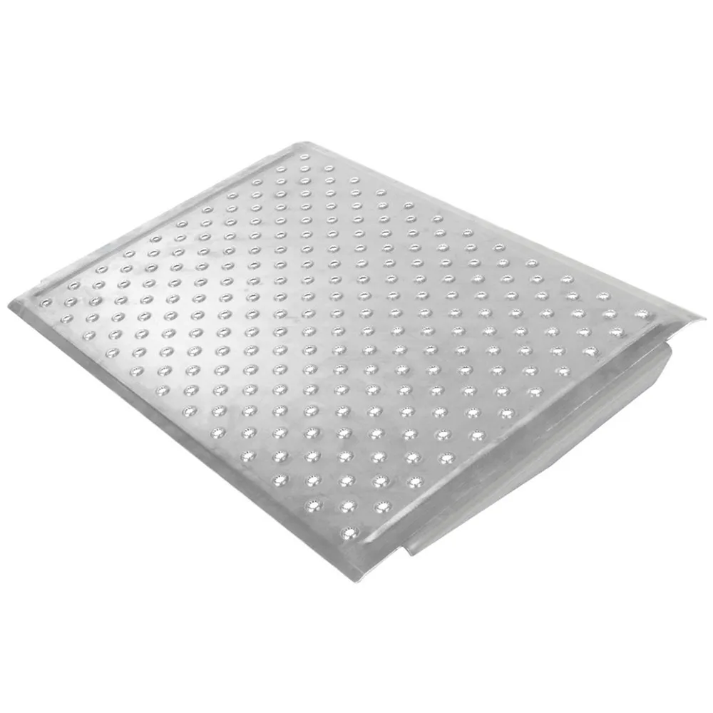 The punch-plate aluminum surface provides superior traction by allowing ice, snow, rain and debris to pass through the ramp for safer use in all weather conditions and climates.