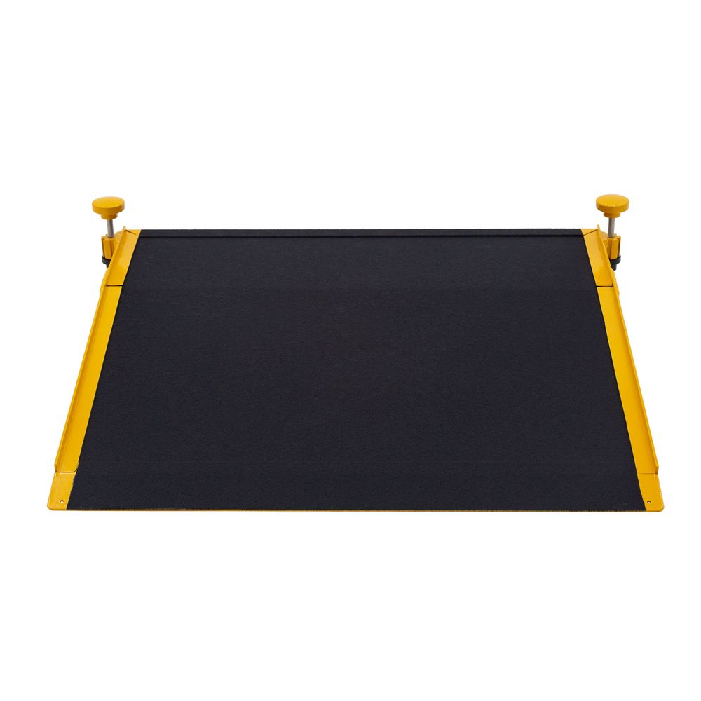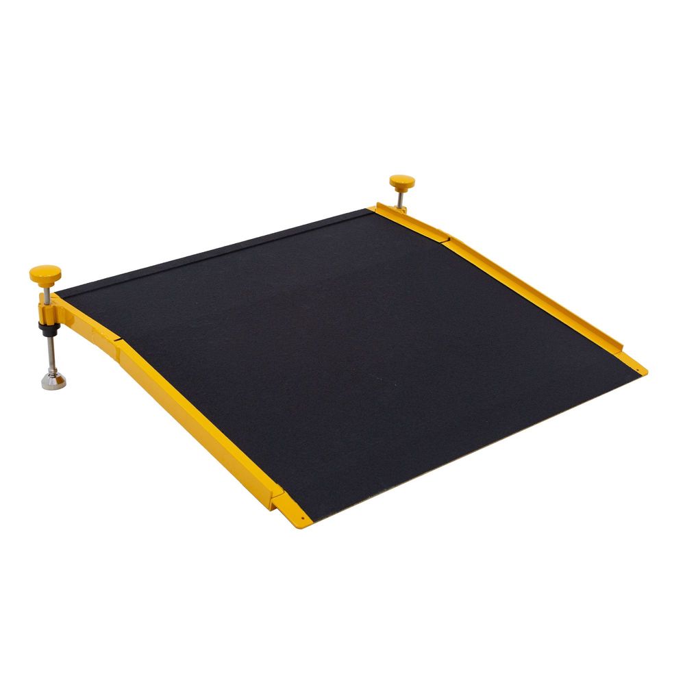 Our threshold ramp is made from high-strength aluminum with an epoxy based grit coat surface for great traction in all weather conditions. The edges of the ramp are painted a bright yellow for high visibility. With a 400 lb. weight capacity this threshold ramp can be used with wheelchairs, scooters and most power chairs.