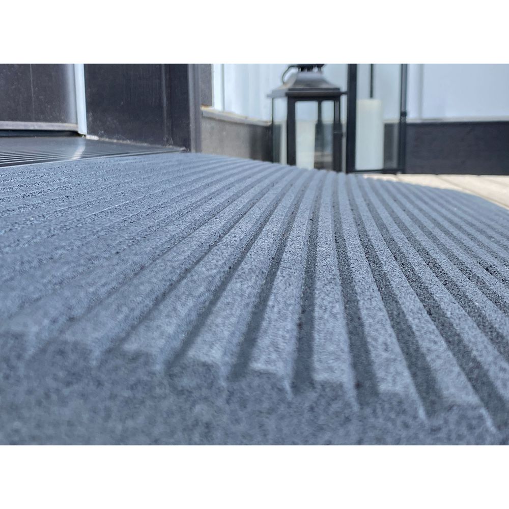 Provide a smooth, gradual transition from the ground to a doorway threshold with the 14" EZ-ACCESS ® TRANSITIONS ® Portable Rubber Threshold Ramp in Storm Gray.